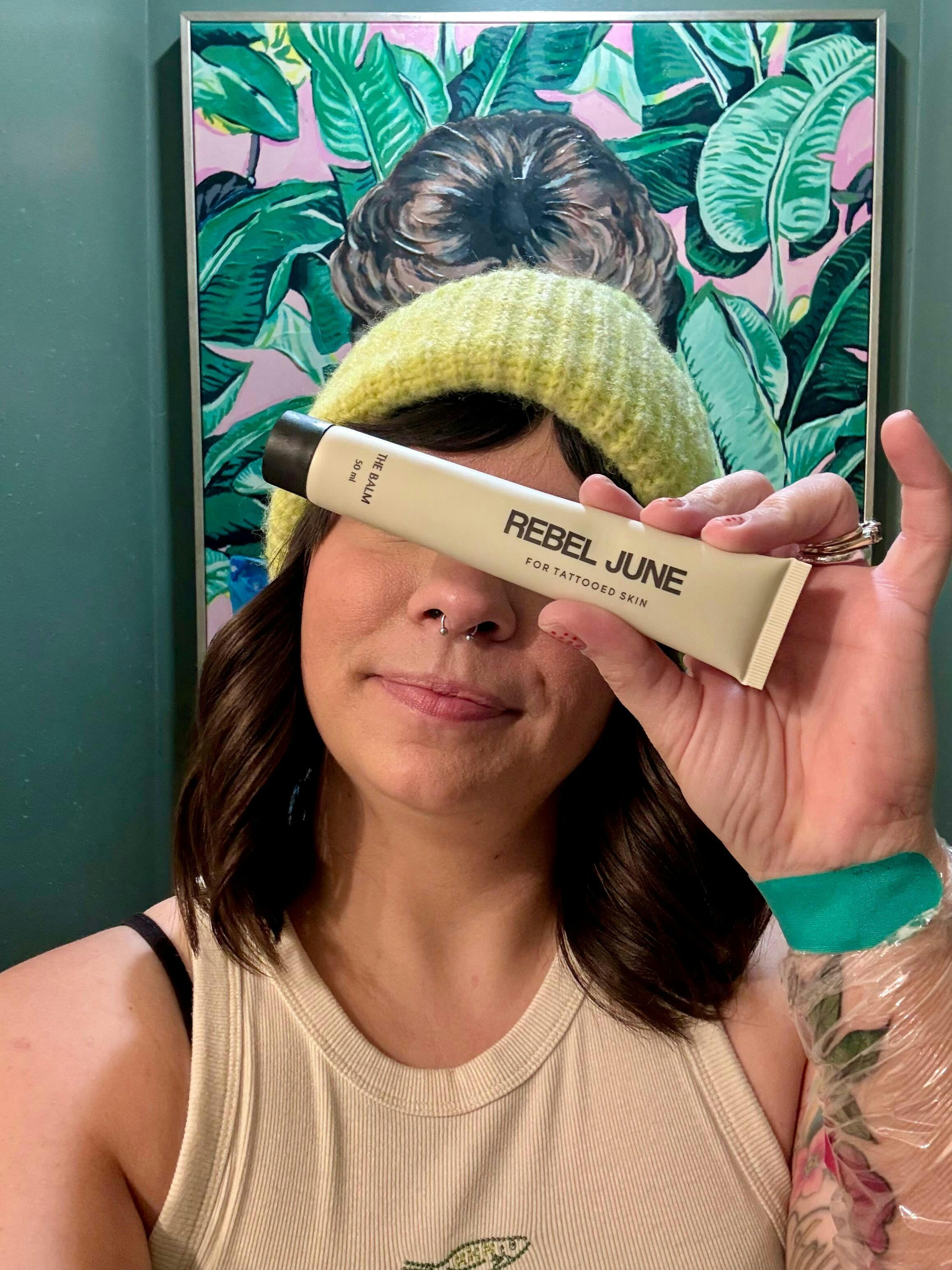 Moisturize and nourish your tattooed skin. Squeeze to apply a generous amount of The Balm onto your clean finger tips. Spread a thin layer onto your tattooed skin. Re-apply daily until tattooed skin is restored.